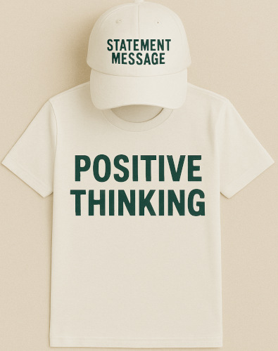 Matching T-shirt and hat set with bold statement designs. Comfortable, stylish, and made to order. Minimum order quantity: 5 sets.